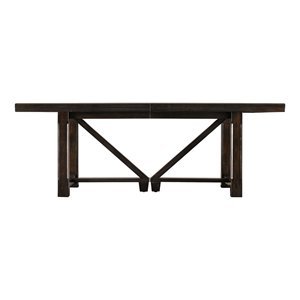 Finish:Mink As structured as the eaves on a Craftsman style bungalow, our consciously simple Breadmaker's Table is a classic example of American woodworking. Versatile and clean without feeling boring, the clean, uncomplicated shape is an airy marriage of function and form. Lower stock-stop foot braces anchor the geometric design. While careful distressing, hand-hewn joinery and slight chamfering on each leg bear the mark of the artisan. Ever practical, the burnished border top readily converts from eight to 10 generously sized placesettings, courtesy of a 22 inch leaf.Bottom of apron to floor: 27.25One 22' leaf included